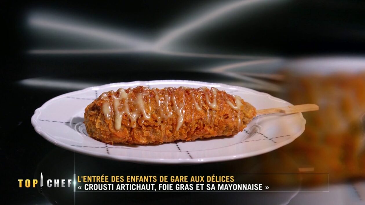 Faire aimer l’artichaut aux enfants sans compromis sur la gourmandise ? Dans la guerre des restos de Top Chef 2026, la brigade d’Antoine, Viviana et Dylan imagine une entrée à la fois comfort food et technique : un corn dog d’artichaut et foie gras, croustillant à l’extérieur, moelleux à cœur. Une recette inspirée de la street food, revisitée en version gastronomique spécialement pour les plus petits.